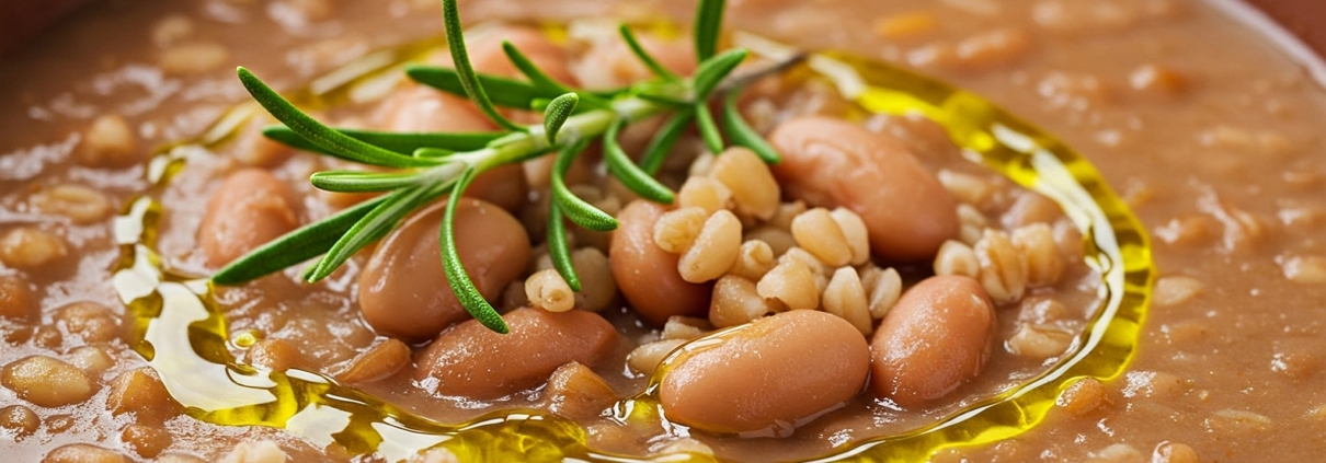 This bean and spelt soup hails from the Lucca region of Tuscany, known for its hearty, honest cuisine. Rich in legumes and grains, it’s a rustic, comforting dish made with farro, borlotti beans, and good olive oil. Creamy and nourishing, this traditional Luccan soup is perfect for cozy winter dinners.